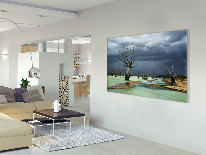 Finished and ready to hang that sits off the wall. Metal printing process produces impacting, durable, easy to clean and super light pieces made right here in Australia. High-definition aluminium prints are made on aluminium that’s coated with a special photographic film. ChromaLuxe brand metal is used, which is resistant to stains, scratches, water, fire, tears, age-related yellowing – and lasts 200-400% as long as the world’s best photo papers. This means you don’t have to protect a metal print under a glass or layer of laminate as you would with regular photo paper.